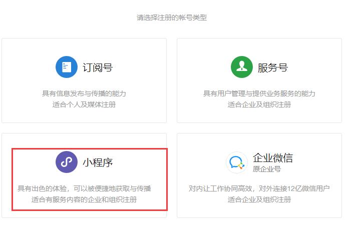 微信小程序注冊范圍: 個人 企業(yè) 政府 媒體 其他組織