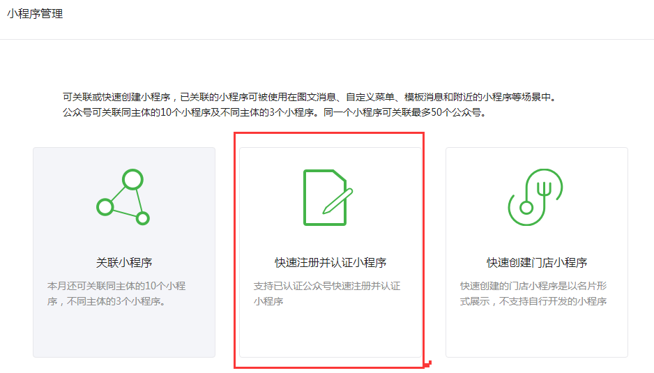(2)點擊小程序管理——添加——選擇“快速注冊并認證小程序”