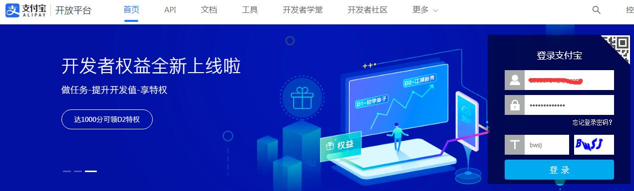 (1)登陸支付寶小程序官網(wǎng):https://open.alipay.com/ 點擊“登錄支付寶”,申請入駐支付寶的開放平臺,點開發(fā)接入。