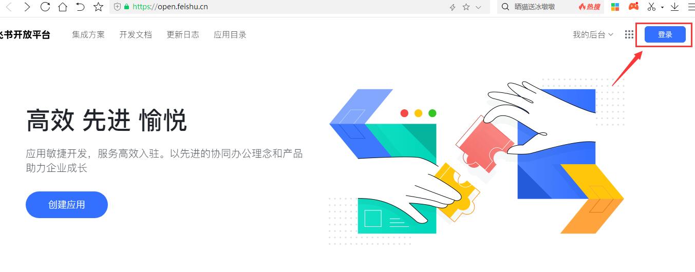 (1)登錄飛書小程序官網(wǎng) https://open.feishu.cn/ 點擊右上角“登錄”,“立即注冊”,進行帳號注冊。