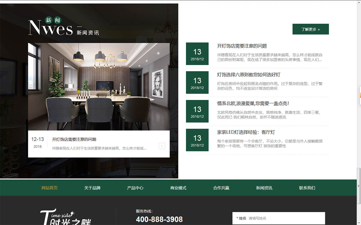 風(fēng)信網(wǎng)絡(luò)響應(yīng)式建站某燈飾有限公司,品牌主營(yíng)十大藝術(shù)創(chuàng)意燈飾,精選用料和工藝,風(fēng)格多樣,無熱量輻射使用安全可靠。與家裝體系較好整合,為您打造一個(gè)舒適藝術(shù)的生活空間。